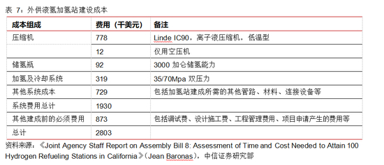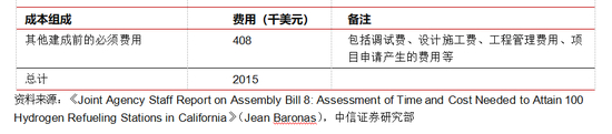 加州能源局的研究数据表明,该类型加氢站建设成本大约为 193 万美元,再考虑到入前使用所需的调试费、设计施工费、工程管理费用、项目申请产生的费用等,总成本大约280 万美元。