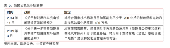 2019 年 3 月,国家财政部再次发布了《关于进一步完善新能源汽车推广应用财政补贴政策的通知》,2019 年 3 月 26 日~6 月 25 日为过渡期,过渡期期间销售上牌的燃料电池汽车按 2018 年对应标准的 0.8 倍补贴,且过渡期后取消地方对新能源汽车(新能源公交车和燃料电池汽车除外)给予的购置补贴,并特别强调将地方补贴转为用于支持充电(加氢)基础设施“短板”建设和配套运营服务等方面。