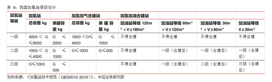 考虑到在一线城市经济较为活跃的区域,土地利用率已较高,若想在这些区域单独开发出一些区域用于加氢站建设难度较大,而这些区域基本已经被加油站/加气站完成布局。因此,如果能够通过氢油合建的模式有效利用好这些能源巨头(中石化、中石油)的土地、渠道等优势,将为加氢站基础设施建设的铺开节省大量初期成本,其中在 2019 年 7 月国内首座油氢合建站—中国石化佛山樟坑油氢合建站正式成立。另外,在二三线城市,由于土地资源相对富裕,预计这些区域加氢站建设以独立建设或油氢合建形式存在。