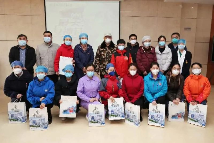 一、在三八女神节来临之际,受陈东升理事长委托,蹇宏秘书长代表校友企业家联谊会前往武汉大学中南医院,慰问战斗在一线的医护师妹和省外救援队的叔伯师妹们。