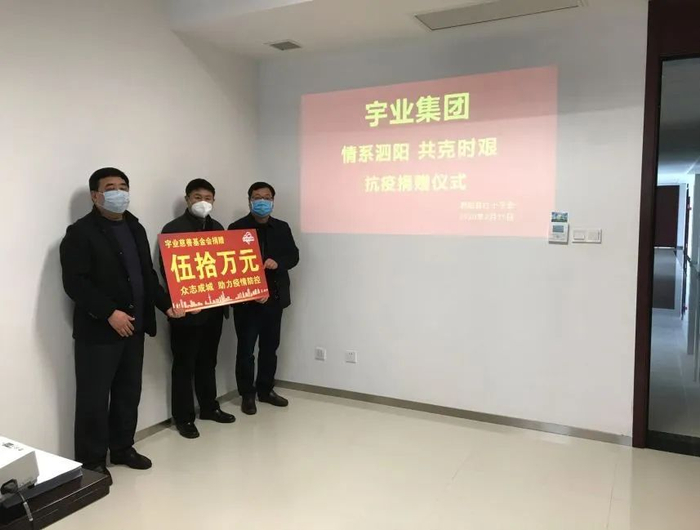 ——2月11日,宇业集团泗阳公司代表集团向泗阳县政府捐赠抗疫基金50万元。