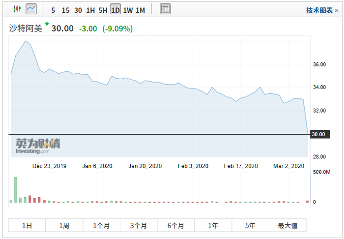 受新冠疫情和产油国之间谈判未果影响,中东股市出现暴跌,其中科威特一度触发熔断,而沙特阿美这家巨无霸也未能扛住杀跌,一度跌破发行价。