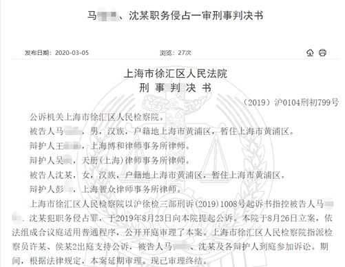 法院审理后认为,马某某身为公司工作人员,单独或授意被告人沈某及其他公司员工,利用职务便利,侵吞公司财产。其中,马某某侵吞公司财产共计180余万元,数额巨大;沈某侵吞公司财产共计80余万元,数额较大,其行为均已构成职务侵占罪,且部分系共同犯罪,应予处罚。马某某在共同犯罪中起主要作用,系主犯;沈某起次要作用,系从犯,依法从轻处罚。
