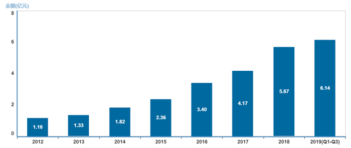 2019年前三季度,利伐沙班的国内重点城市销售额达到6.14亿元,为拜耳独家占据市场份额。相比2018年全年已完成48.61%的增长,在治疗小类中的占比也呈逐年增长的趋势。