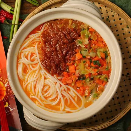 通过先进的物理杀菌工艺,不添加任何防腐剂,在延长保质期至180天的同时,最大限度保留米线的原本风味。