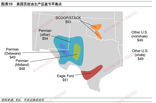 沙特此次的降价和增产量,美国页岩油预计将受到很大的打击。页岩油不同产区的生产成本差异较大,但市场普遍认为不同产区的盈亏平衡点油价大约处于48-54美元/桶区间,当前国际油价水平已经跌破这条平衡线,油价继续下跌的情况下,预计中小型页岩油公司将面临较大的压力。