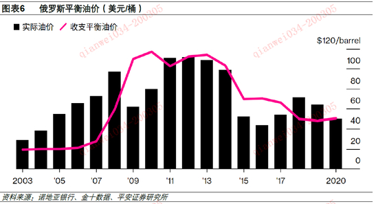 2.2俄罗斯对低油价容忍度高,减产意愿远低于沙特