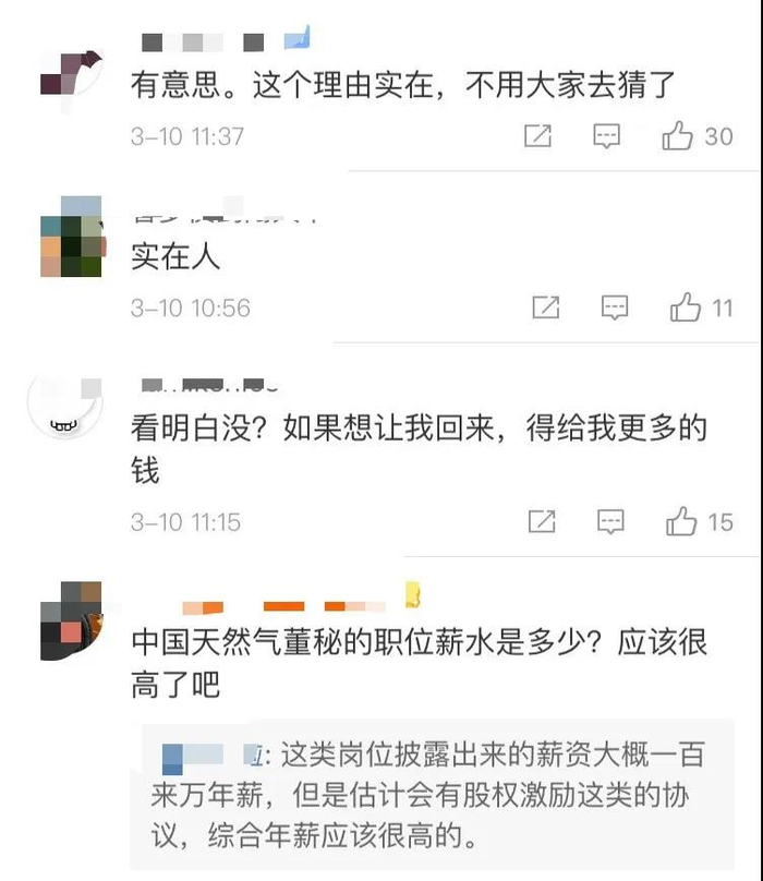 3月9日晚间,中国天然气集团有限公司专门发布一则公告,对此前公布的执行董事辞任提供了更多信息,明确表示,“林雨洋先生停止在本公司工作是因为他找到了一份薪金更高的工作。”