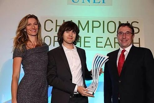 这样不但敢想、有行动力还有创造力的小哥哥,称得上是环保界的乔布斯了。因为他在环保方面的贡献,2014年11月联合国环境署授予他地球冠军奖(the Champions of the Earth award)的荣誉。
