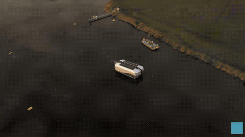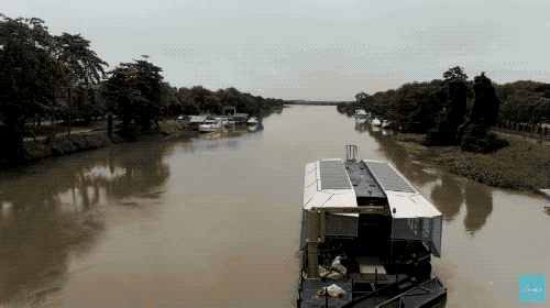 2019年10月,Slat 的海洋清理推出了完全由太阳能驱动的全自动河流塑料垃圾截留趸船 Interceptor。它长这样——