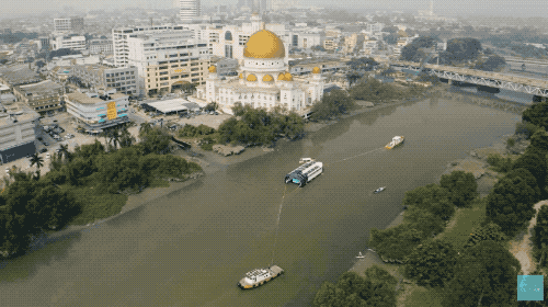 这种趸船可以固定在河床上,借助河流运动截留塑料垃圾。它的形状类似于双体船的船体,重心比较低,也不怕浪大翻转。