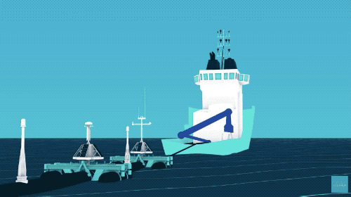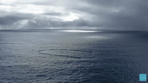 一起来看看 Slat 的设计。这个海洋塑料回收装置长达600米,工作时它会自然地凹成C形,像簸箕一样兜住垃圾。
