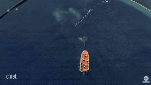 2018年9月,他们在旧金山用第一个设计 System 001 实施了第一次清理计划。但不幸的是,一号设备因为速度太快而断裂了,没有回收任何塑料。那之后,Slat 和团队里的科学家开始着手改良设计,添加了一个类似于降落伞的锚——