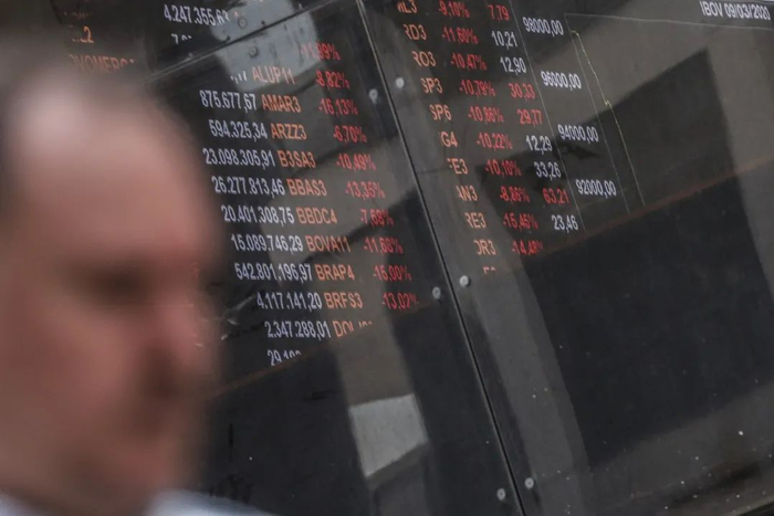 3月9日 ,巴西圣保罗,一名男子经过证券交易所