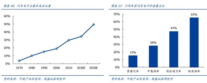 随着5G通信给予汽车行业的技术突破机会,目前众多车企也在布局新能源汽车以及智能汽车领域。作为新能源/智能汽车,汽车内电子化程度不断提升,我们认为汽车电子产业同样迎来结构化催化。