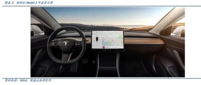 中框大屏将成为未来的必然趋势,承载更多服务与功能,使汽车成为一个集交通工具、娱乐、办公的终端系统。自从特斯拉推出17寸中控屏,随着新能源汽车渗透率不断提高,汽车电动化、数字化、网联化程度不断加深,新能源车采用全液晶触控显示屏、中控屏设计比例大幅提高。