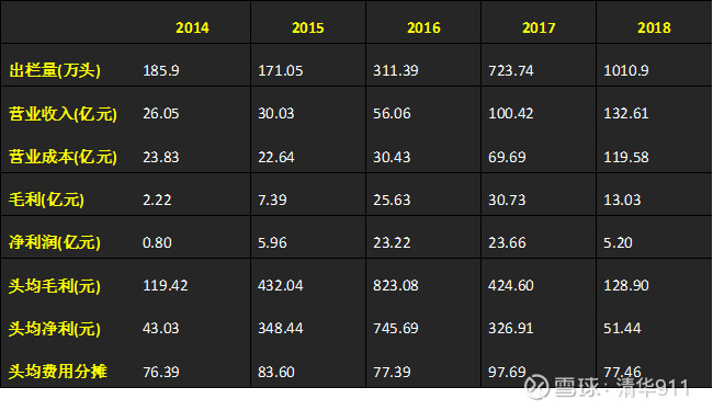 说到这里,我们可以以主营业务全部集中于养猪的牧原2014年至2018年这五年的头均盈利为例,来验证一下300元/头的头均盈利是否合理。