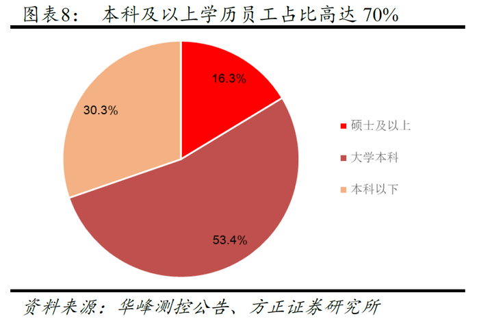 作为技术密集型行业,人力资本是半导体设备企业最核心的资产,显然公司具备这方面的优势。截止2019年6月公司在册员工(含退休返聘)人数为208人:①从员工分布看,公司研发人员数量为66人,占公司总人数34.13%,排名第一;②从学历分布看,2018年本科及以上学历员工145人,占比70%。由此可见,公司具备丰富的人力资本,这是公司过去十几年能始终坚持技术赋能、创新驱动的重要保障,也是公司未来持续发展的重要基石。