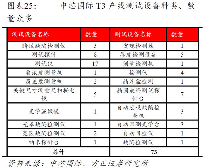 ②晶圆制造环节,以中芯国际的天津项目T2、T3生产线为例,两条晶圆生产线上所需的工艺控制设备多达十几种,两条生产线所需的检测设备总数量合计多达194台。
