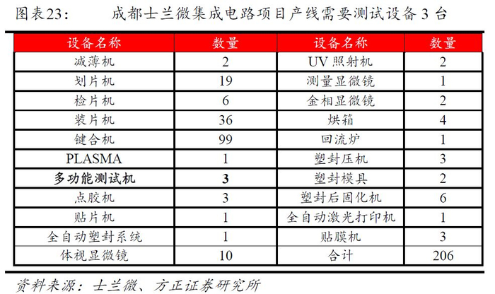 ①芯片设计环节,以士兰微成都项目产线为例,多功能测试机采购量有3台。