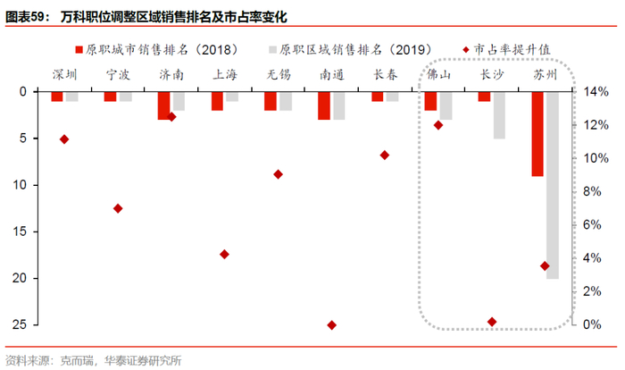 与此同时,对于业绩表现欠佳的业务高层公司也开启了能上能下的政策。2019年至2020年1月,共有14个区域高层出现职位调动,其中有三位城市总被免职,这三个城市19年全年销售额的城市销售排名或市占率均有显著下滑。