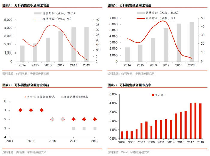 综上,我们依然看好未来万科基本盘即住宅开发规模的拓展空间,长期有望实现万亿规模,聚焦2020年,万科在过去两年和三年销售额年复合增速分别为9%和20%,我们预计2020年万科有望实现10%以上的销售增速,销售额冲击7000亿,向新门槛迈进。