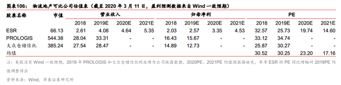目前具备成熟估值的物流地产上市企业都在海外市场,以美股PROLOGIS(PLD.N)、大众仓储信托(PSA.N)以及港股ESR(1821.HK)为对标,2019 和2020年业绩对应PE均值分别为31、25倍。我们给予普洛斯2020年归母净利(扣除公允价值变动损益)对应的PE以26倍,即普洛斯市值可达215亿美元,对应1495亿人民币。因此,万科所持有的普洛斯股权预计估值达320亿。