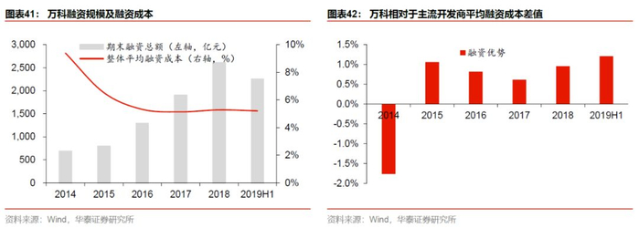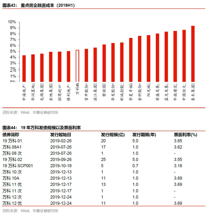 除此以外,万科还具备平台优势。2019年万科借由港股平台,于3月增发2.63亿H股,融资总额78亿港元,并全部用于偿债。同时,万科于19年11月董事会通过了一次性授权发行H股的议案,预计增发H股还会有进一步动作。