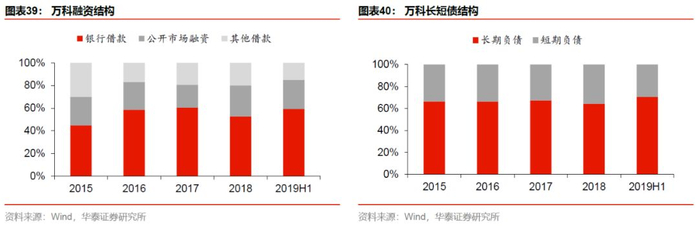 此外,融资集中度提升也将强化万科的优势。自2017年起,房企融资集中度显著提升,自2016年的58%升至66%,18、19年均稳定在65%-66%的区间。我们预计随着行业野蛮生长时代的消逝,市场予以运营能力更多的关注,也将引导资金向更具内核优势的房企集聚,进一步巩固万科作为运营绩优生的优势。