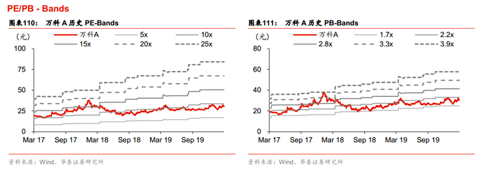 综上,我们给予物业管理2021年PE35-40倍,商业地产2020年PE13-15倍,物流地产2020年PE26倍,我们认为万科的多元化业务总估值为1814-2003亿,考虑到权益,可贡献万科估值合计1331-1450亿,加上房地产开发主业NAV4057亿,合计市值约为5389-5507亿。