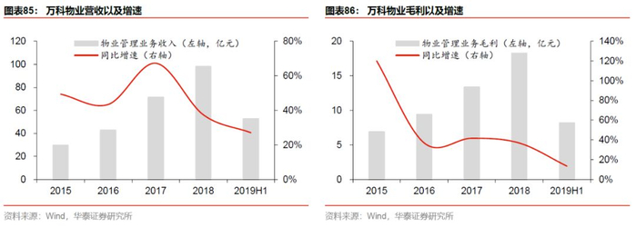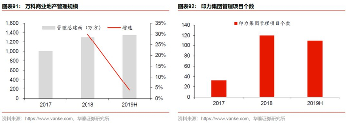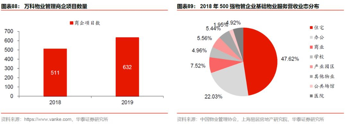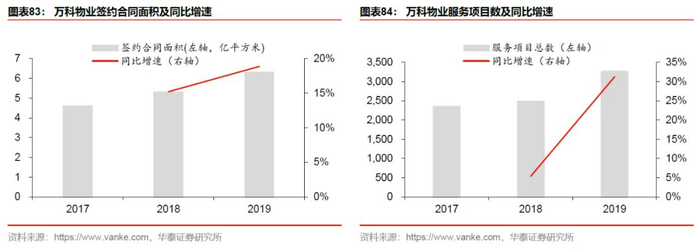 1. 强化对机构物业的渗透。我们曾在2019年10月30日发布的非住宅物业深度报告《升维新模式,掘金新蓝海》中强调机构物业这一新赛道的广阔前景。万科对非住宅物业的渗透主要体现在两方面:1)商企物管规模持续提升,2019年总管理项目数达632个,同比增长24%;2)加深与国际商业物管龙头的战略合作,2018年公司收购戴德梁行4.9%股权成为其第四大战略股东,2019年12月,与戴德梁行签约成立合资公司,新公司将聚焦商业物业与设施管理领域,主要业务包括商业物业及资产管理、综合设施管理等。