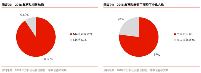 第一个是住宅小型化趋势,万科自始至终秉持大众化定位,即“为普通人造好房子,造有人住的房子”。从2001年开始,万科就展开了小型化住宅的专项研究,产品以中小户型普宅为主,2018年的销售中,144平及以下户型占比达91.4%。