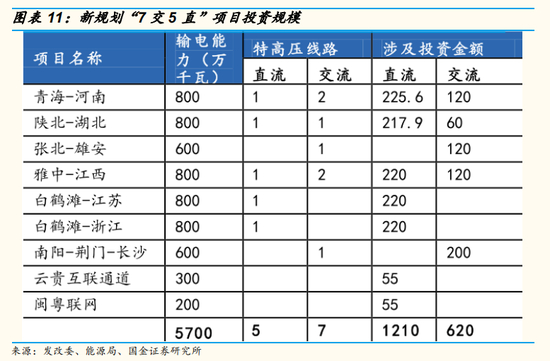 新规划“7 交 5 直”项目带来约 1800 亿元投资,2020 年预计投资额预计超 600 亿。新规划共规划了 5 条特高压直流和 7 条特高压交流项目,合计输电容量达到 5700 万千瓦,我们估算涉及投资金额达到 1800 余亿元。一般而言特高压建设周期在 2-3 年左右时间,预计 2020 年全年投资额至少在 600 亿以上。