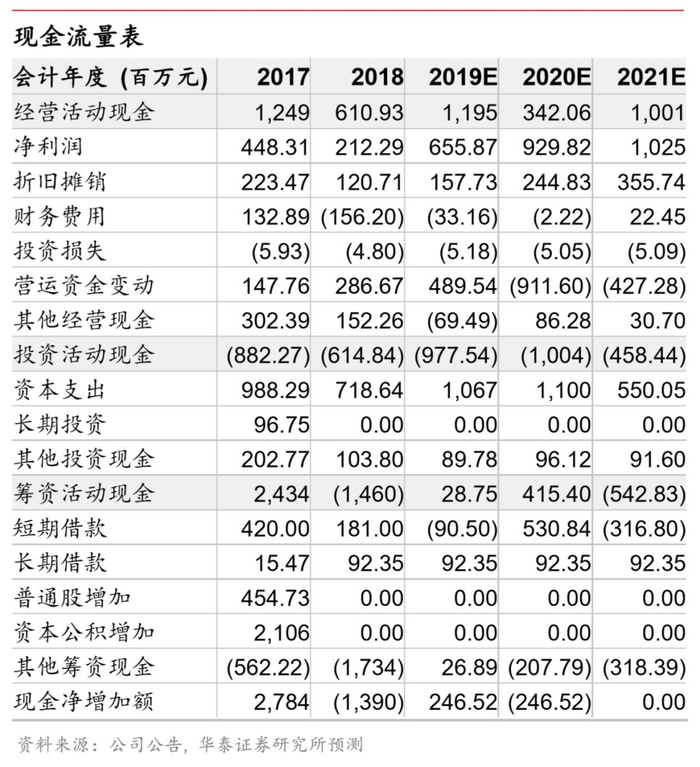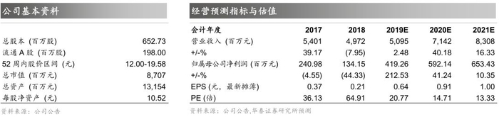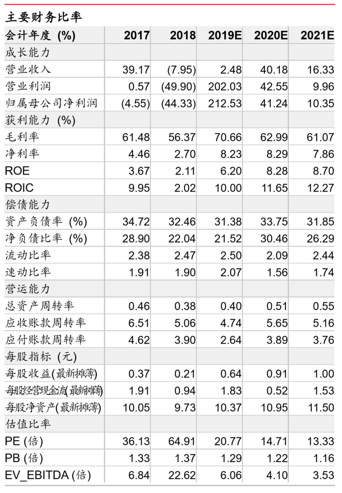根据前述相关假设,我们预计公司2019-2021年归属于母公司股东的净利润为4.19、5.92、6.53亿元,EPS为0.64、0.91、1.00元,PE为20.8、14.7、13.3倍。