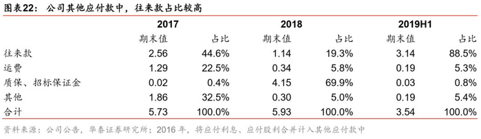 另外,公司预计负债和其他应付款占比较高,其中,预计负债为2.86亿元(2019Q3末),占总负债比例达7.1%,该项主要为环境恢复治理费,因南非法律要求铜矿开采结束后需将建筑物及设备拆除;其他应付款为3.86亿元(2019Q3末),占总负债比例达9.6%,主要以河钢集团与公司间的往来款为主(2018年除外)。