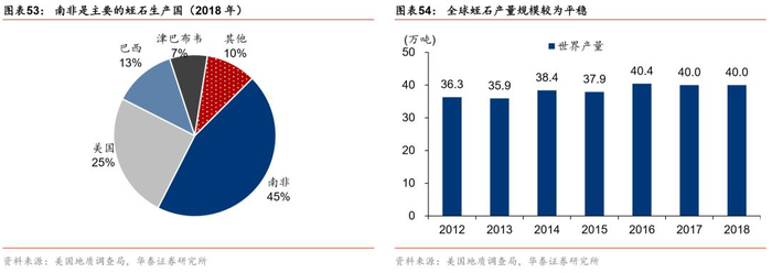 南非是主要的蛭石生产国。据美国地质调查局,2018年全球蛭石产量约为40万吨,且近年来全球产量较为平稳。其中,南非是主要生产国,产量约为18万吨,占比为45%。而PC公司蛭石矿是南非主要出产蛭石的矿区,同时是世界前三大蛭石矿,2018年产量为15.3万吨,约占南非整体的85%。
