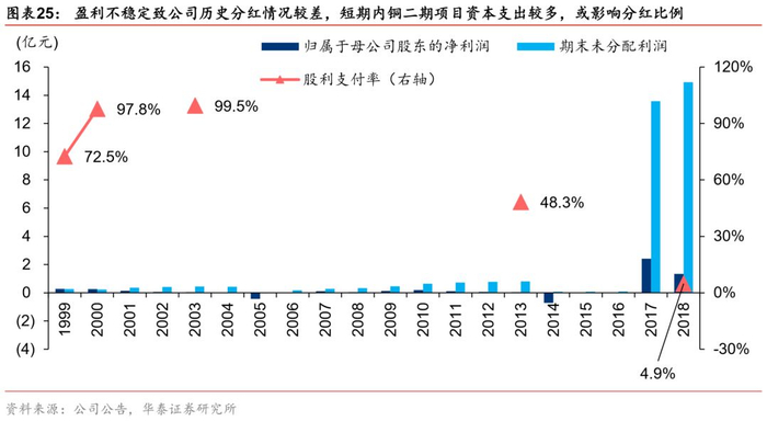 短期现金分红或有限。公司最新章程(2019.5)规定,任何三个连续年度内,以现金方式累计分配的利润原则上应不少于该三年实现的年均可分配利润的30%,但章程中规定此分红比例前提条件是满足公司持续经营和长期发展,且可视情况实行差异化分红政策,即以其它方式进行部分利润分配。由于目前铜二期项目正处于建设阶段,资本支出较多,或对公司现金分红情况带来影响。