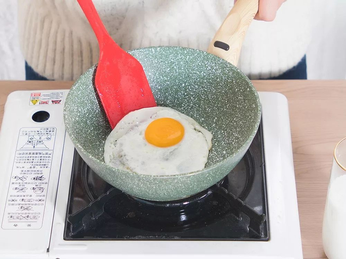 看用它煎蛋,来回翻都完全不会粘锅。