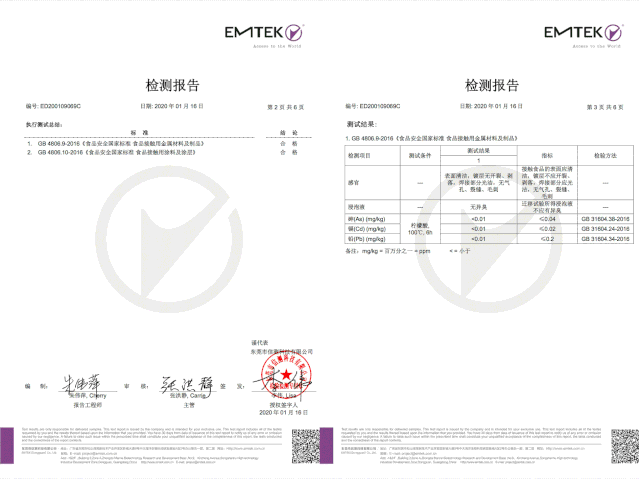 注:检测产品为相同材质和涂层的同系列产品(只口径、尺寸不一样)。SGS是全球领先的检验、鉴定、测试和认证机构,是全球公认的质量和诚信基准。