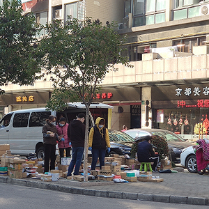 3月5日,负责上海泰宸沙河名苑小区的圆通快递小哥,从白色面包车上卸下近四百个包裹,整整齐齐地堆放小区门口地上。三个人守在此处,通过系统逐一通知用户取件,从上午九点到晚上九点。“小区不让进,没办法,之前积压的包裹太多了,我们就在这儿等。”快递员坐在小凳子上边刷手机边说。