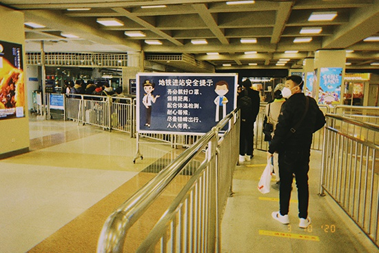 西直门凯德MALL作为交通站点商业,地下直通西直门站。在地铁站口,贴满了开通凯德星会员的广告,旁边则是相隔一米的人群在排队候车。