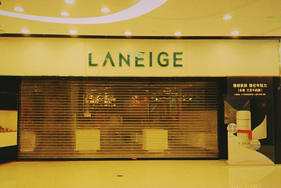 相比餐饮的热度,西直门凯德MALL的其他楼层有些冷清。大门进来一层左手边的黄金位置是MAC门店,拉下了一扇卷帘门,仅打开一扇入口。午餐时段,店里除了两位店员,空无一人。其中一位店员用化妆品制作宣传册,用眉笔在纸上一根根勾勒着眉形。