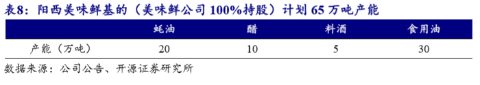 阳西美味鲜基地(美味鲜公司100%持股):已动工建设,未来接续产能。2017 年初公告计划新建阳西美味鲜基地65 万吨产能,以非酱油品类为主,5 年建设期,3 年后可以产出。2017年已开始动工修建。