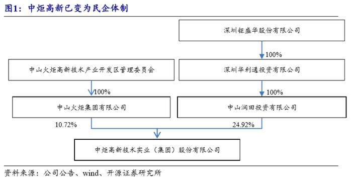 宝能集团入驻中炬高新之前,公司实际控制人与大股东为中山火炬区国资委,持股比例较低(10.7%)。2015 年4 月前海人寿(宝能集团旗下的险资机构)通过二级市场增持方式举牌,后续不断增持,2015年 9月成为公司第一大股东。2018年11月董事会换届,宝能集团占据多数席位,取得实控权。2019年3月公司实控人变更为姚振华,公司正式转为民营体制。