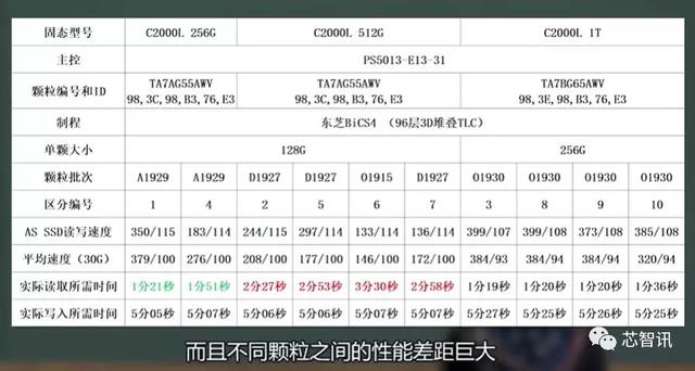 ▲测试的C2000L 512G闪存盘,采用的是群联的主控和群联封装的东芝白片(并不是东芝原厂闪存芯片),并且其中有一颗芯片的批次与其他三颗不同,混用批次,将较大影响性能。