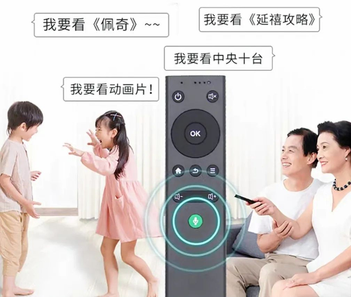 旗舰版的亦智投影仪还支持AI智能声控,按一下遥控器上的“语音"键,说出想看的视频,就能直接播放了。