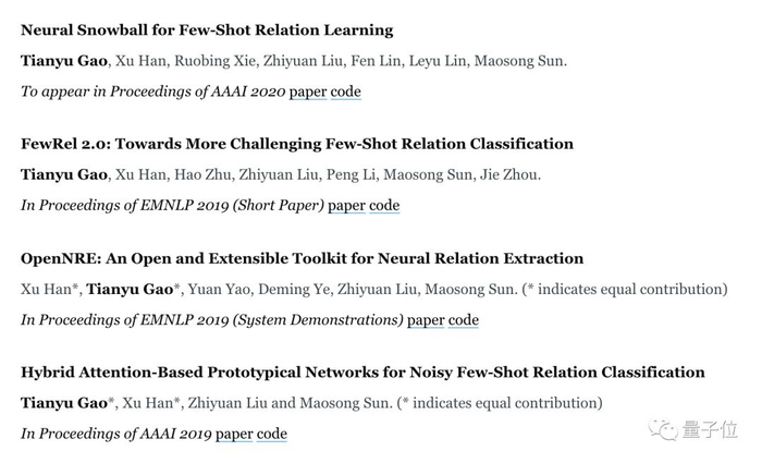 他还为清华大学的三个GitHub项目做出了主要贡献,其中一个NLP项目——关系提取的开源软件包OpenNRE——自去年上线以来获2.3k星标。
