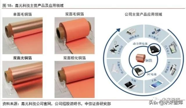 嘉元科技铜箔产品不断升级更新。嘉元科技设立初期,主要产品为 18-35 μm 的单面 毛铜箔,2018 年公司已经实现了 6 μm 极薄铜箔的高品质、规模化生产。2019 年,公司 6 μm 以下(5 μm 和 4.5 μm)的极薄铜箔的研发生产也已实现,显示出公司丰富的技术经 验和雄厚的研发实力。
