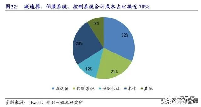 核心零部件是机器人产业链进口替代的关键环节。工业机器人的三大核心零部 件分别是控制器、伺服系统、减速器,占到制造成本接近 70%,是制约中国机器人 产业发展的主要瓶颈。