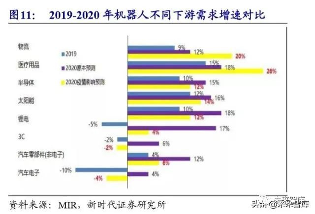 医疗用品:劳动密集型,对卫生和安全要求高,一直是稳定增长得市场。疫情 短期刺激口罩机等需求,中长期加速机器换人,预计全年高速增长。